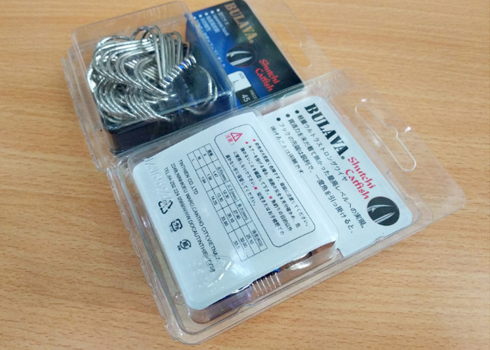1.Model Shutchi Catfish - L; Kích thước: 1.65 - 14.2 - 33.8mm; Chịu tải: 33.5kg; Số lượng: 45 lưỡi/hộp; Chất liệu: Thép carbon cao; Giá bán: 300.000VNĐ.